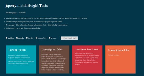 Match Height це jQuery плагін який робить висоту всіх виділених блоків одинаковою.