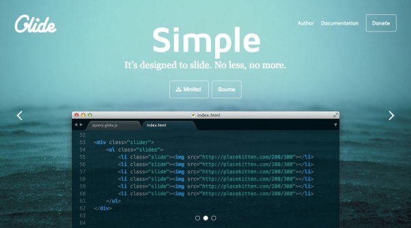 Glide це адаптивний, простий, легкий, швидкий та дотиково(тач) орієнтований jQuery слайдер на основі CSS3 переходах(transitions), не більше та не менше.