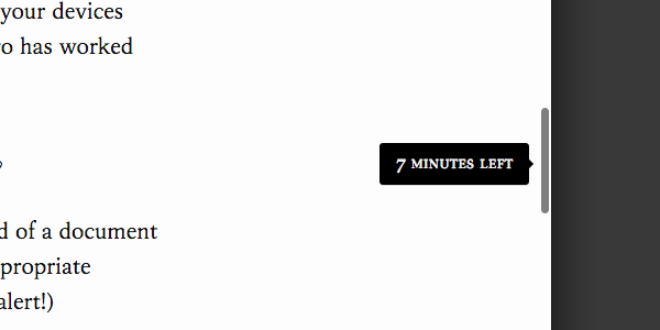 Потім використовуємо minCount в поєднанні з perc, щоб показати читачеві їх час, що залишився, щоб прочитати статтю. Ось дуже простий варіант реалізації цієї концепції.