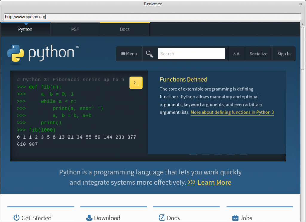 myapp.ui.qwebview.load(QUrl('http://www.talkera.org/python'))