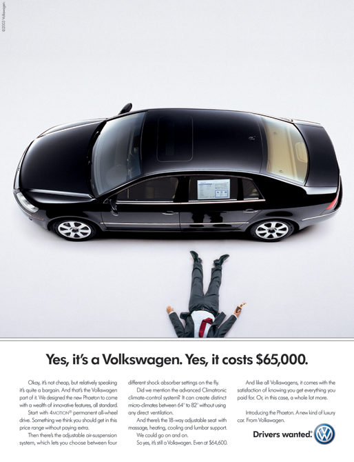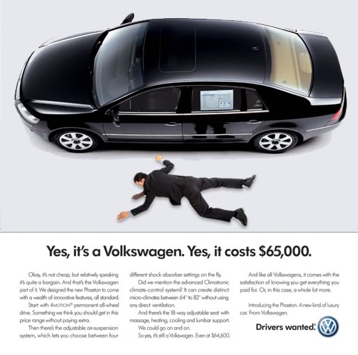 За весь час свого існування Volkswagen стали справжніми майстрами в цій справі. Їх прості та динамічні об'яви вигідно контрастують з іншими журнальними.